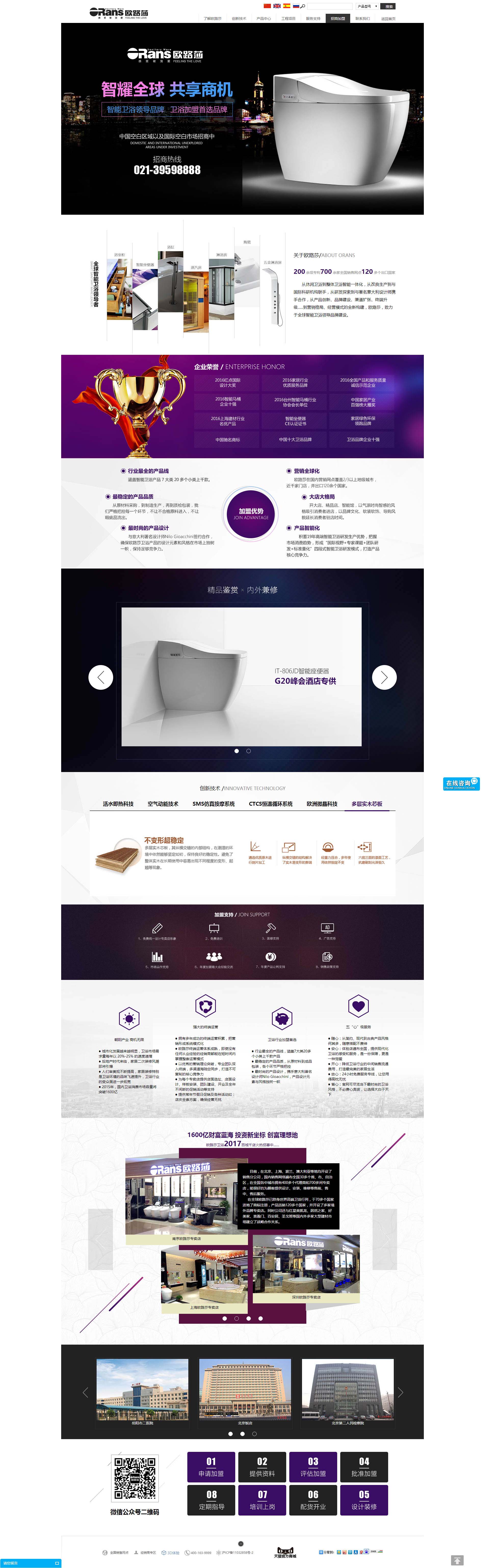 歐路莎衛(wèi)浴始創(chuàng)于1998年,是一家專注于智能衛(wèi)浴研產(chǎn)銷的科技型自主品牌企業(yè),是中國最早從事整體衛(wèi)浴智能化打造的品牌,先后成為按摩浴缸、桑拿房、淋浴房、智能座便器行業(yè)標準的起草制定單位,獲得“中國馳名商標”、“中國十大衛(wèi)浴品牌”、“衛(wèi)浴品牌企業(yè)十強”等百余項殊榮,擁有各種產(chǎn)品專利200余項,全國銷售網(wǎng)點700余家,出口全球120多個國家,并一直堅持走自主研發(fā)、品牌創(chuàng)新發(fā)展的道路。