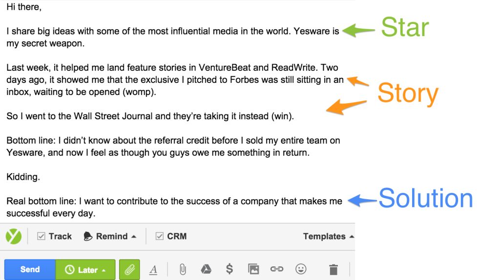 Star — The main character in your email. It could be you, your prospect, a product, etc.