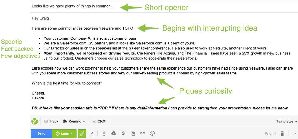 今天我們接著來總結(jié)最佳模版。包括來自Yesware銷售達(dá)人和其他人的真實(shí)示例。